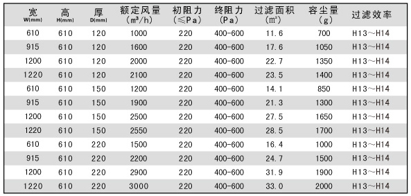 用戶選購指南-拋棄式一體化高效過濾器技術(shù)參數(shù)
